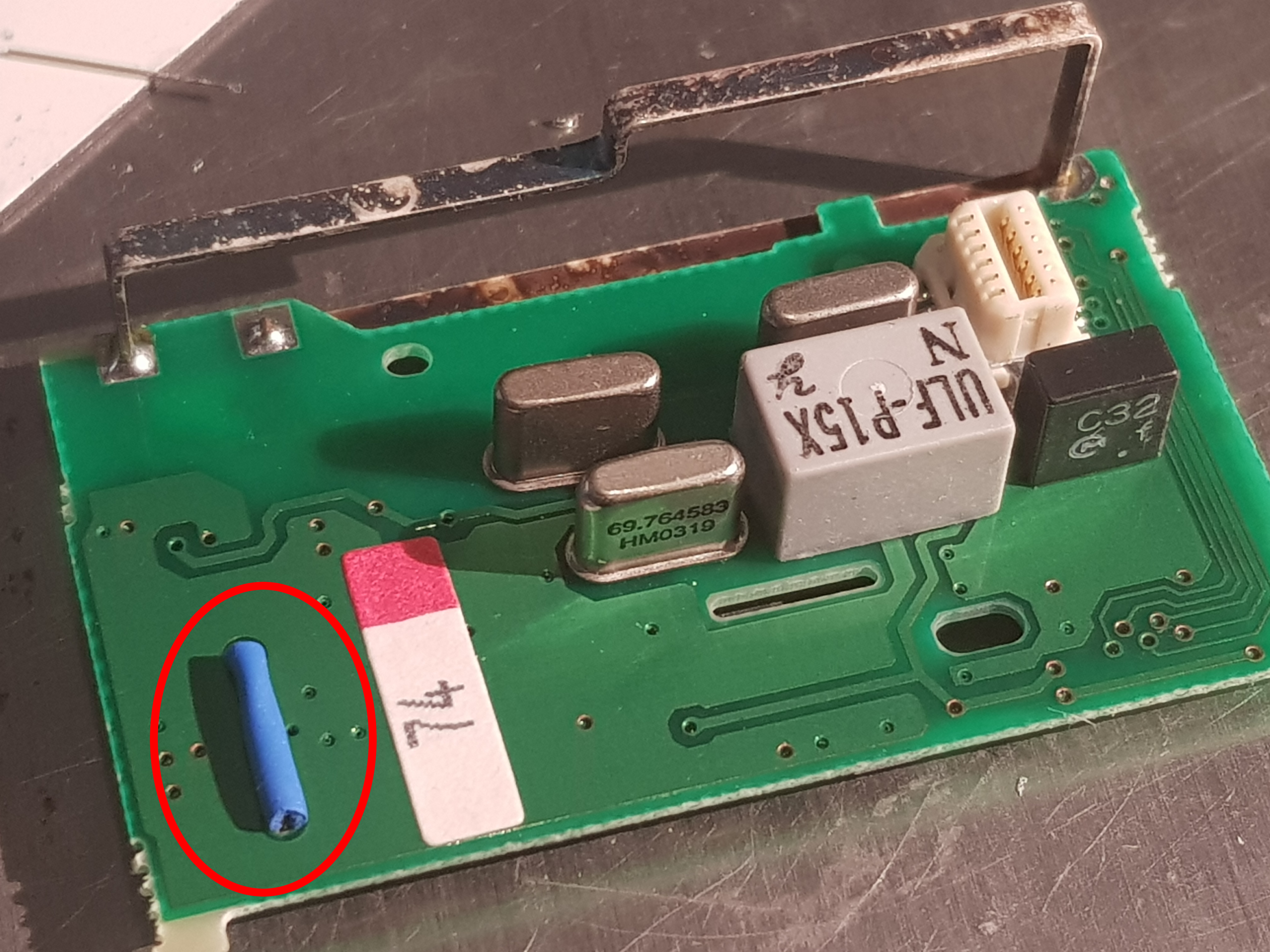 When the filter is removed put in a little piece of silver wire to reconnect in- and output. A good source is the shortened ands of the crystal which is also exchanged. Of course this is just an easy hack and obviously reduces sensitivity. When re-adding the piece of wire be sure that it is not shortened to GND. It is recommended to add some heat shring tube to isolate.